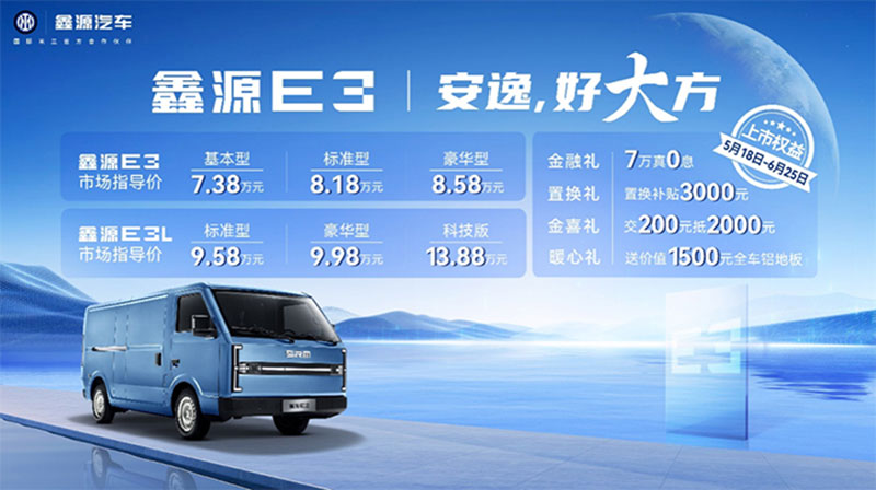 优德88官网网站E3作为“逍遥,,,,,,,,好大方”全新车型,,,,,,,,共推出优德88官网网站E3、优德88官网网站E3L两个车型,,,,,,,,划分有基础型、标准型、豪华型、科技型等6款设置,,,,,,,,指导价7.38万元-13.88万元。。。。。。。。上市还推出新车上市权益包:1、金融礼-7万真0息;2、置换礼-置换津贴3000元;3、金喜礼-交200抵2000元;4、暖心礼-送价值1500元全车铝地板。。。。。。。。优德88官网网站E3以“一寸长·一寸强”、“移动家·头等舱”和“好·省”三大焦点卖点,,,,,,,,为新能源城配物流树立新标杆!