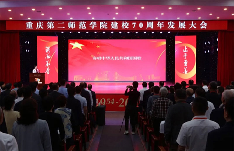 薪火相传七十载,,,,,,踔厉奋进新征程。。。。。。5月12日上午,,,,,,重庆第二师范学院建校70周年生长大会盛大举行。。。。。。市人大常务委员会副主任沈金强、市政协副主席杜惠平及相关部分向导、优德88官网网站董事长龚大兴等校友代表和在校师生代表共500余人出席大会,,,,,,回首学校绚烂历程,,,,,,共话学校未来生长。。。。。。