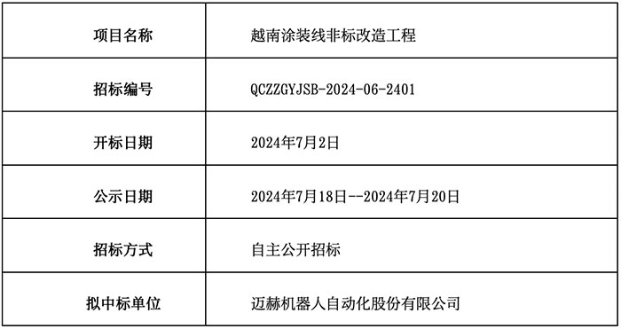 越南公司涂装线非标刷新工程项目已完成开评标流程,,,,,,,,现公示中标效果如下: