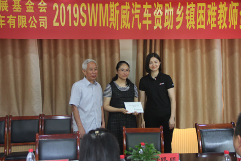 2019年9月10日,,,,,,是第三十五个西席节,,,,,,在全社会向先生致敬的同时,,,,,,重庆市璧山区福禄小学校的先生收到了一份特殊的西席节礼物。。。。。。在2019SWM斯威汽车费助州里难题西席资助金发放运动中,,,,,,来自璧山区福禄小学校的受助西席代表伍夏红先生,,,,,,领取了5000元的“SWM斯威汽车州里西席专项教育帮助资金”。。。。。。